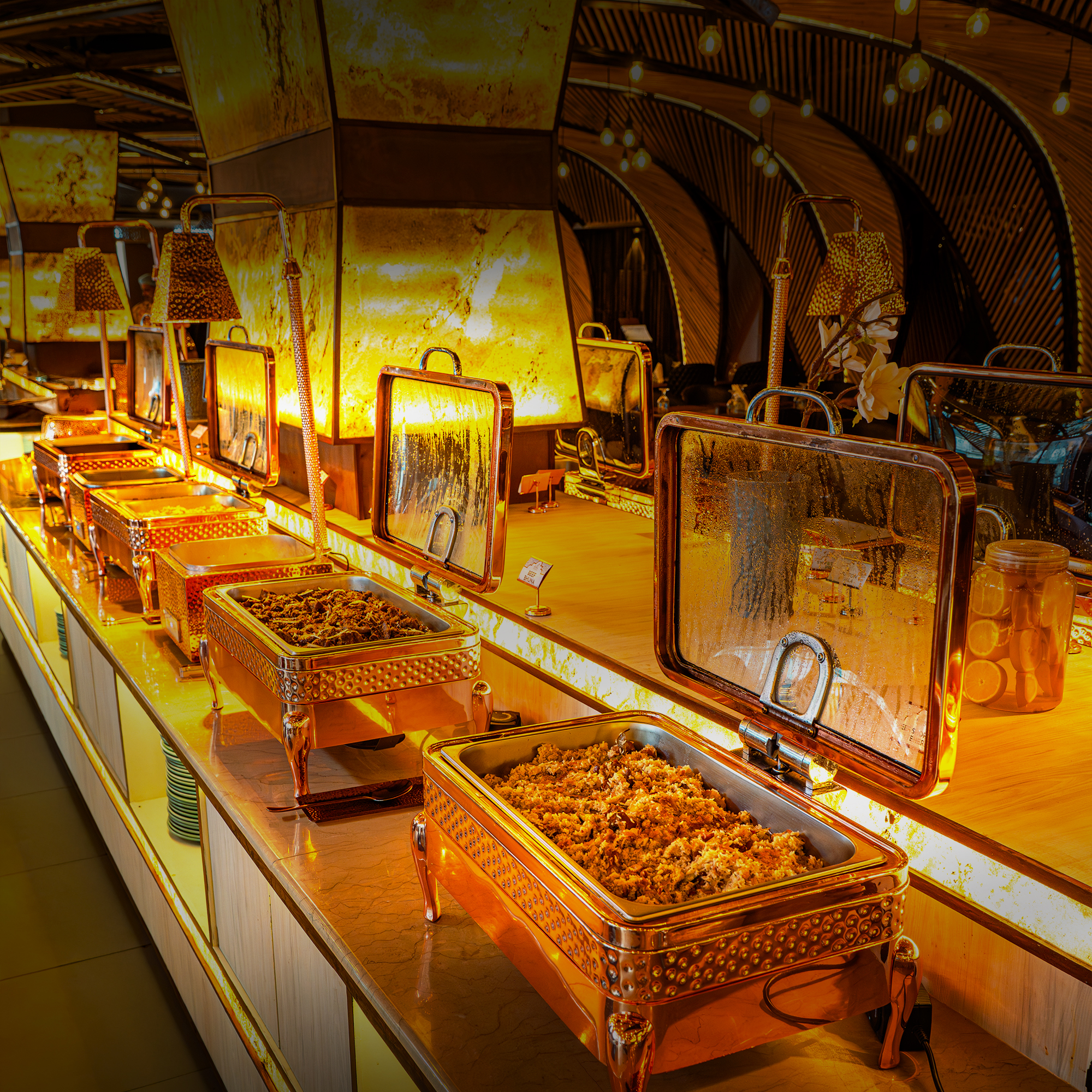 Our buffet features a wide variety of local and international cuisines, carefully prepared by experienced chefs to ensure rich flavors and quality in every dish. From appetizers and main courses to desserts, guests can enjoy a complete dining experience under one roof.